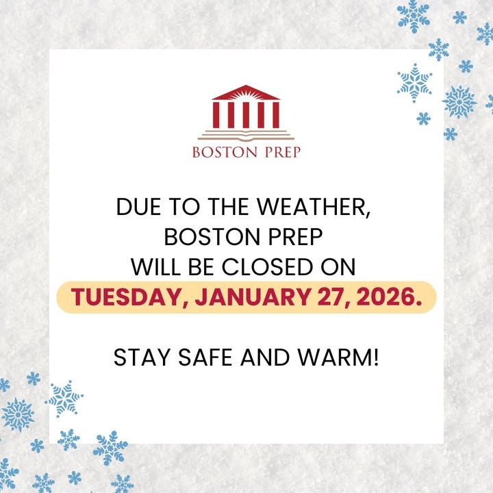 Due to the weather, Boston Prep will be closed on Tuesday, February 24, 2026.