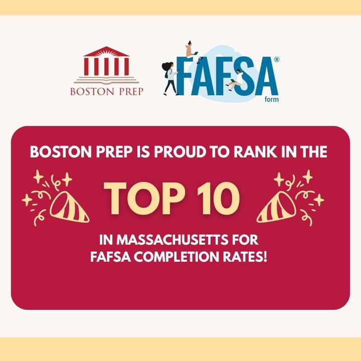 We’re proud to share that 75% of our high school seniors have already completed the FAFSA, placing Boston Prep in the top 10 in Massachusetts for FAFSA completion rates.