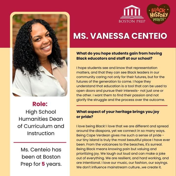 ✨ Happy Black History Month! ✨ We’re proud to spotlight the incredible Black educators who help shape our community and empower tomorrow’s ethical leaders at Boston Prep.