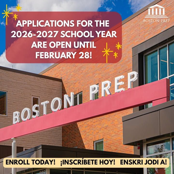 Boston Prep is accepting applications for the 2026–2027 school year! We’re a tuition-free public charter school in Hyde Park serving grades 6–12, and we’re currently enrolling students entering grades 6–10.