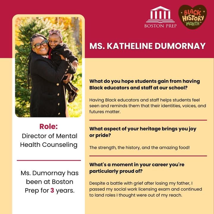 We’re proud to spotlight Ms. Katheline Dumornay, our Director of Mental Health Counseling, who has been part of the Boston Prep community for 3 years! Ms. Dumornay’s resilience and care deeply impact our students and community. We’re grateful for the compassion, support, and leadership she brings to our scholars each day. ❤️💛
